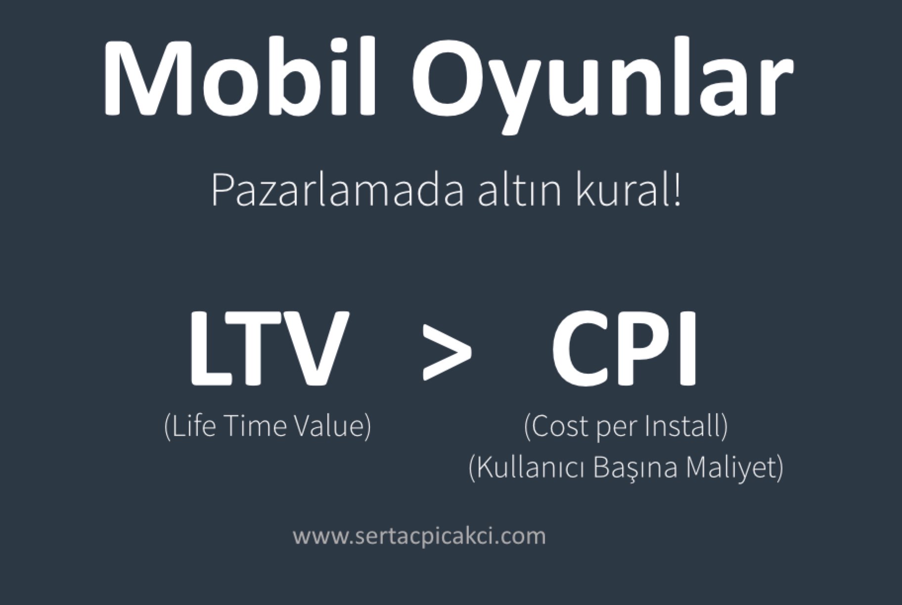 LTV çok basit tanımıyla oyuncularınızın ortalama olarak oyununuzu ne kadar süreyle (gün, ay vb….) oynayacağı ve oynarken toplamda ne kadar para harcayacağını gösteren bir metriktir. LTV’ye genelde pazarlama bütçelerinin nasıl harcanması gerektiği konusunda bakılır. Pazarlama bütçelerinin karlı olabilmesi için çok basit ve tek bir şart var; LTV’nizin kullanıcı başına ödediğiniz pazarlama giderinden fazla olması.