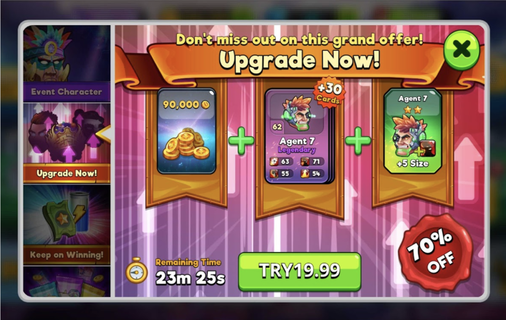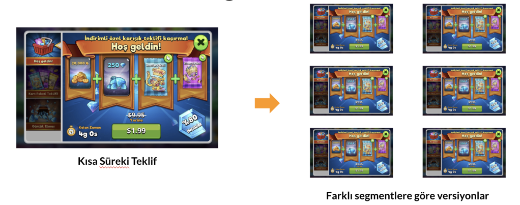 Live Ops stratejilerinin bir diğer önemli parçası olan “kısa süreli teklifler” oyunda kullanıcı başına gelirin maksimize edilmesi adına çok kritik bir öneme sahip.