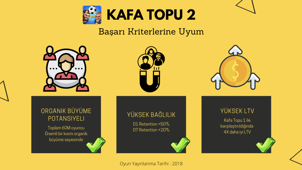Kafa Topu 2 ile gerçekleştirmek istediğimiz; Kafa Topu 1’in “Organik Büyüme Potansiyeli” ve “Yüksek Bağlılık” özelliklerine “Yüksek LTV” başarısını eklemek.