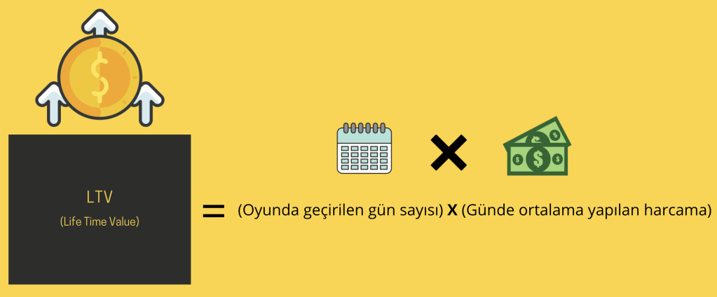 LTV = Oyunda geçirilen süre X günde ortalama harcanan para